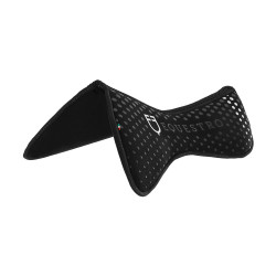 La inserción central en tejido perforado se adapta perfectamente a la morfología del caballo, eliminando la presión sobre su columna y mejorando la adherencia a la silla de montar.